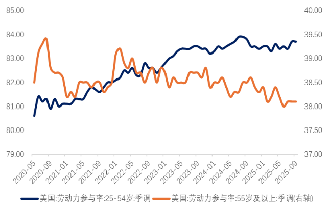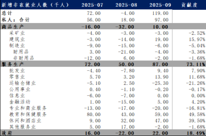 行业就业增长范围略有扩大,增加就业的行业扩散指数在五个月内首次升至50以上。尽管如此,受人口老龄化驱动,且对于利率周期相对不敏感的医疗保健与社会援助(+5.7万人)行业为本次增长的主力推手,受降息提振的休闲与酒店业(+4.7万人)也展现了较为强劲的劳动力需求。政府总就业人数反弹2.2万人,但增长完全源于州与地方政府层面;受持续招聘冻结影响,联邦政府就业人数再度减少0.3万人,因前期的政府裁员计划以及政府停摆影响,后续的联邦就业人数或将遭受更显著冲击。