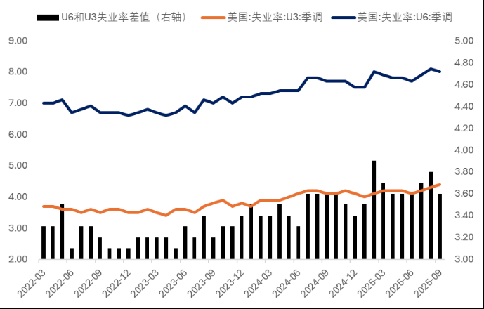 3、 考虑到失业率所揭示的劳动力市场潜在的疲软态势,以及剔除关税引发的结构性价格上涨后逐步温和的通胀背景,美联储12月展开25基点的降息操作具备其合理性,但即便是12月美联储维持利率按兵不动,前期因政府停摆所导致的数据持续缺席也放大了当下宏观环境的不确定性,使得鹰派立场在经济降温态势下也具备其合理性。